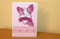 Noch ein Stück Designpapier, verziert mit einer Borte und fertig ist eine romantische pastellige Karte.